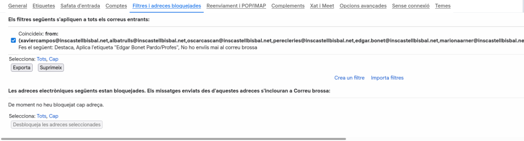 After accessing the settings, I navigated to the “Filters and Blocked Addresses” section to manage and refine automated filtering rules. This allowed me to define precise criteria for sorting incoming emails, ensuring that messages were automatically categorized according to relevance and priority.