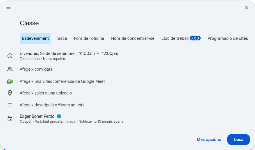 Si és una classe recurrent, selecciona l’opció d’esdeveniment.