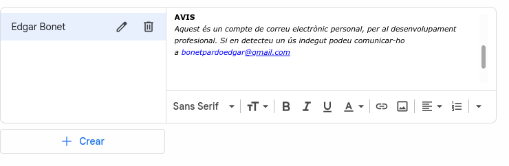 I escrivim el text que volem que aparegui com a firma. Un cop acabat, deses els canvis.