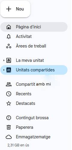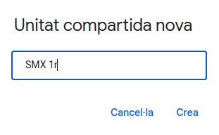Accedeixo a Google Drive i faig clic a Unitats compartides. Creo una nova unitat compartida, li poso un nom i l’obro. Afegeixo les persones que necessiten accés, introduint els seus correus electrònics. Assigno els rols corresponents: administrador, editor o lector, segons les necessitats de cada persona.