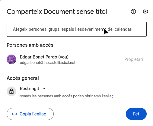 Per compartir carpetes o arxius des de Google Drive o que faig és: