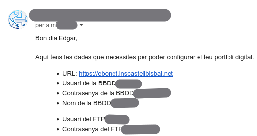 Per fer el desplegament de WordPress ens van enviar un correu amb les nostres dades per poder Iniciar sessió.