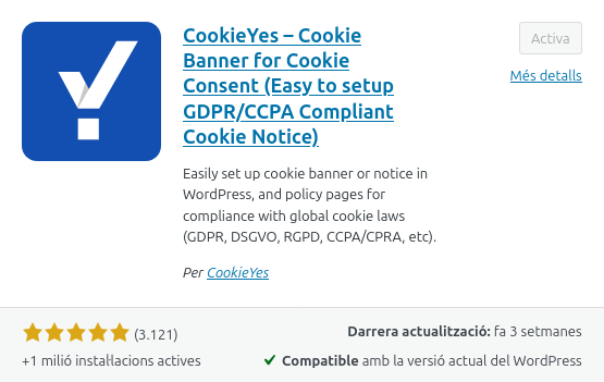 CookieYes: Serveix per gestionar el consentiment de cookies i assegurar que el teu lloc web compleix amb les normatives de privacitat