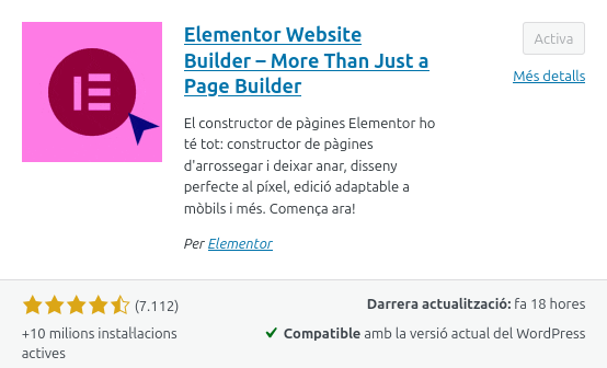 Elementor: Serveix per facil·litar la creació de dissenys atractius sense necessitat de coneixements de programació. A més, ofereix moltes plantilles i widgets per personalitzar l’aparença del teu lloc web.