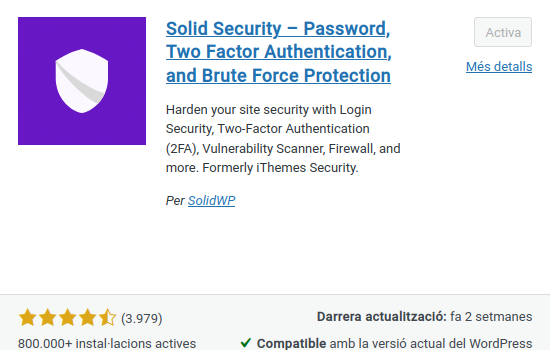 Solid Security Basic: Refuerce la seguridad de su sitio con seguridad de inicio de sesión, autenticación de dos factores (2FA), análisis de vulnerabilidades, firewall y más. Anteriormente conocido como iThemes Security.