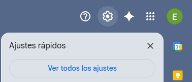 Per activar la redirecció cap al correu corporatiu, vaig accedir a Gmail, vaig prémer la icona de l’engranatge i després vaig escollir l’opció “Mostra tota la configuració”.