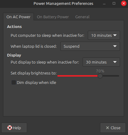 - A On AC Power, li dic que apagui la pantalla als 10 minuts d’inactivitat.