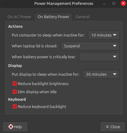 - Un cop a dins, em fixo en les dues pestanyes: On AC Power (Amb corrent) i On Battery Power (Amb bateria).