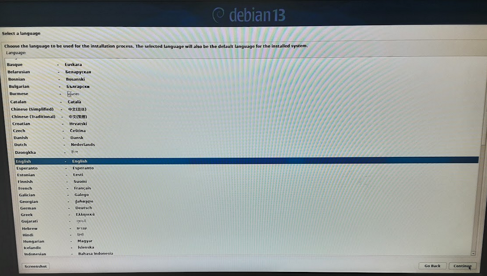 2.2- El primer pas dins de l’instal·lador va ser escollir l’idioma. Vam seleccionar Angles, ja que era un dels requisits especificats a la rúbrica de la pràctica.