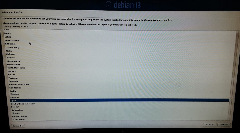 2.3- El següent pas va ser definir la localització del sistema. Vam seleccionar Espanya seguint la ruta Other → Europe → Spain