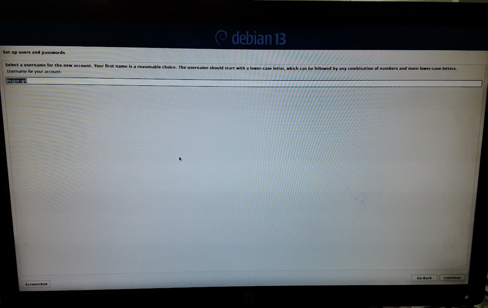 2.10- Un cop acabada la instal·lació, el sistema va indicar que calia reiniciar. Vam treure l’USB quan l’ordinador s’estava apagant per assegurar-nos que el següent arrencament fos des del disc dur. En tornar a engegar-se, ja ens va aparèixer el login de Debian i vam posar el nostre usuari i contrasenya per entrar.