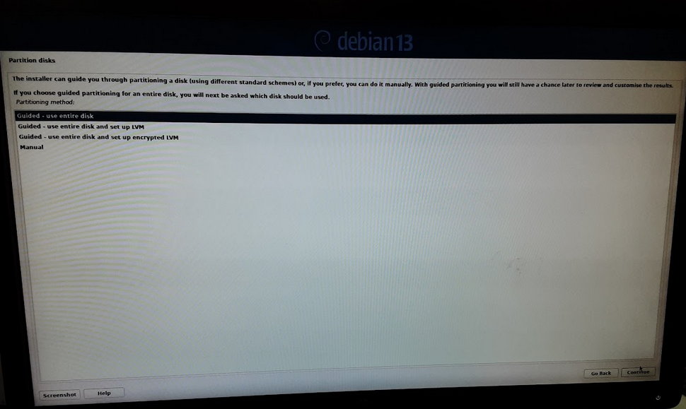 2.8.1- Vam selecionar l’opcio de Guied – use entire disk and set up LVM
