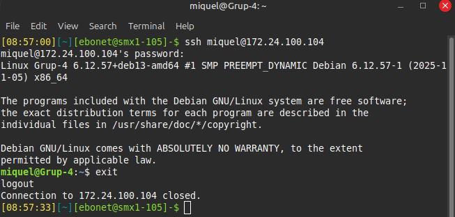 Perquè els canvis facin efecte, necessitem reiniciar el servei SSH: