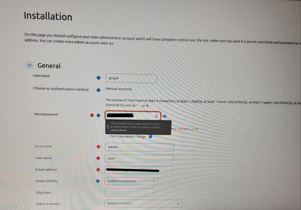 Aquest pas és molt important de cara a l’administració de Moodle, ja que és l’usuari que s’encarrega de tot allò relacionat amb el lloc.